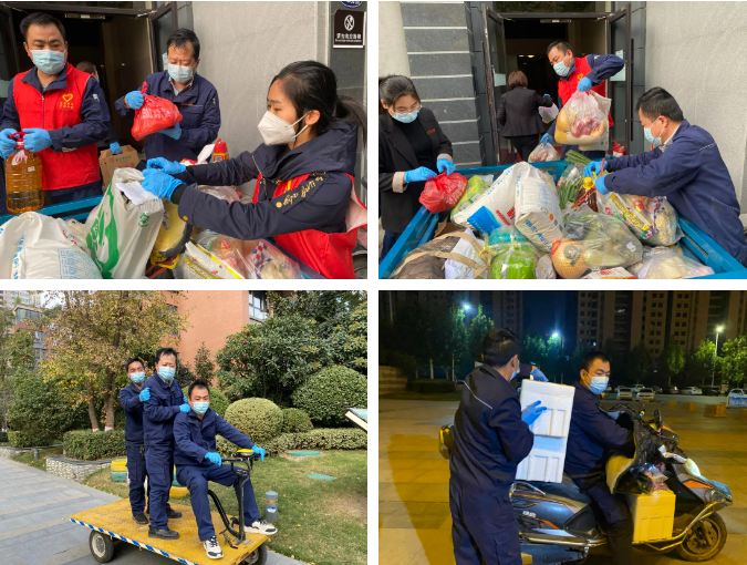 因?yàn)橐咔楣芸兀?1號(hào)樓1單元的122戶業(yè)主被封控在家。他們一戶戶統(tǒng)計(jì)業(yè)主物資需求,統(tǒng)一進(jìn)行購(gòu)買和配送。物資到位后,他們又全員上陣,先按照樓層進(jìn)行分類,再由5名維修工穿著密不透風(fēng)的防護(hù)服,一趟趟地穿梭在小區(qū)里。為了提高效率,三輪車、電動(dòng)車都被利用起來,只為盡早將物資運(yùn)送到業(yè)主手中。