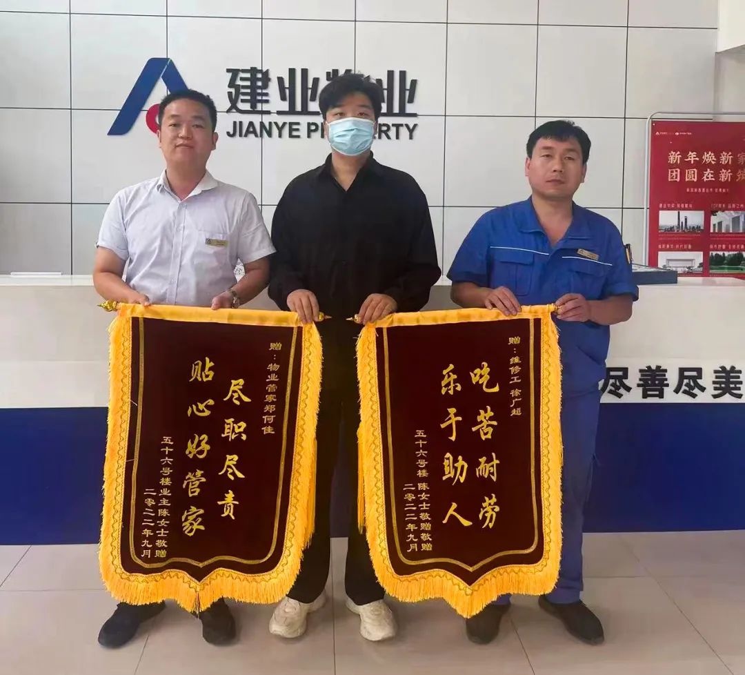 10月份,建業(yè)物業(yè)在管項(xiàng)目共涌現(xiàn)出好人好事892件,其中收到錦旗159面,感謝信94封,其他致電表揚(yáng)640次。