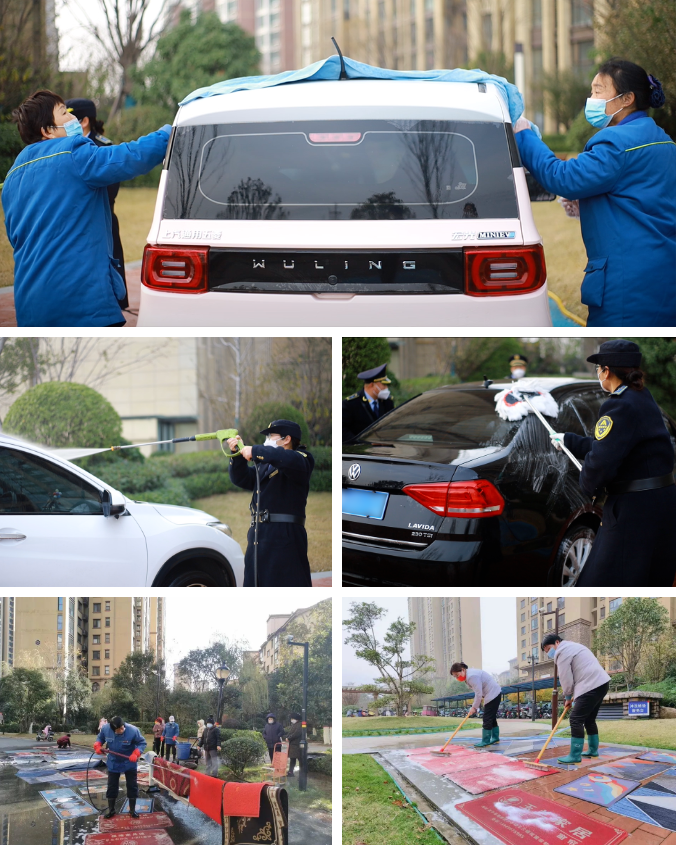 在高壓水槍的沖刷下,一塊塊地墊地毯,一輛輛汽車(chē)煥然一新。解壓的場(chǎng)景也讓人的心情變得好了起來(lái),去污除垢,擺脫晦氣,迎接一個(gè)嶄新的新年。
